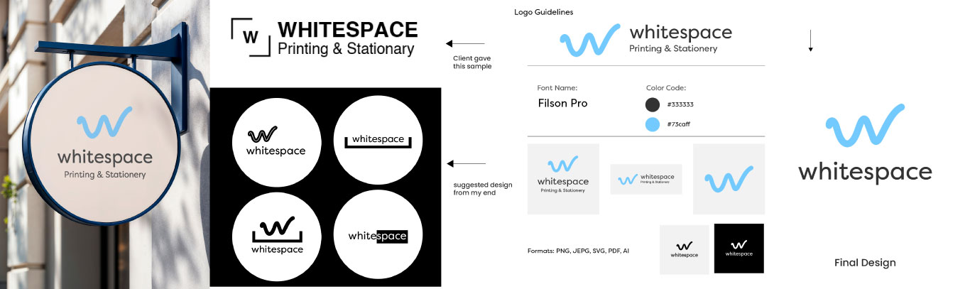Whitespace is a printing and stationery business that focuses on high-quality sticker printing and a wide range of stationery products. The brand wanted a clean, modern, and versatile visual identity that would reflect simplicity and creativity—values essential to their business.